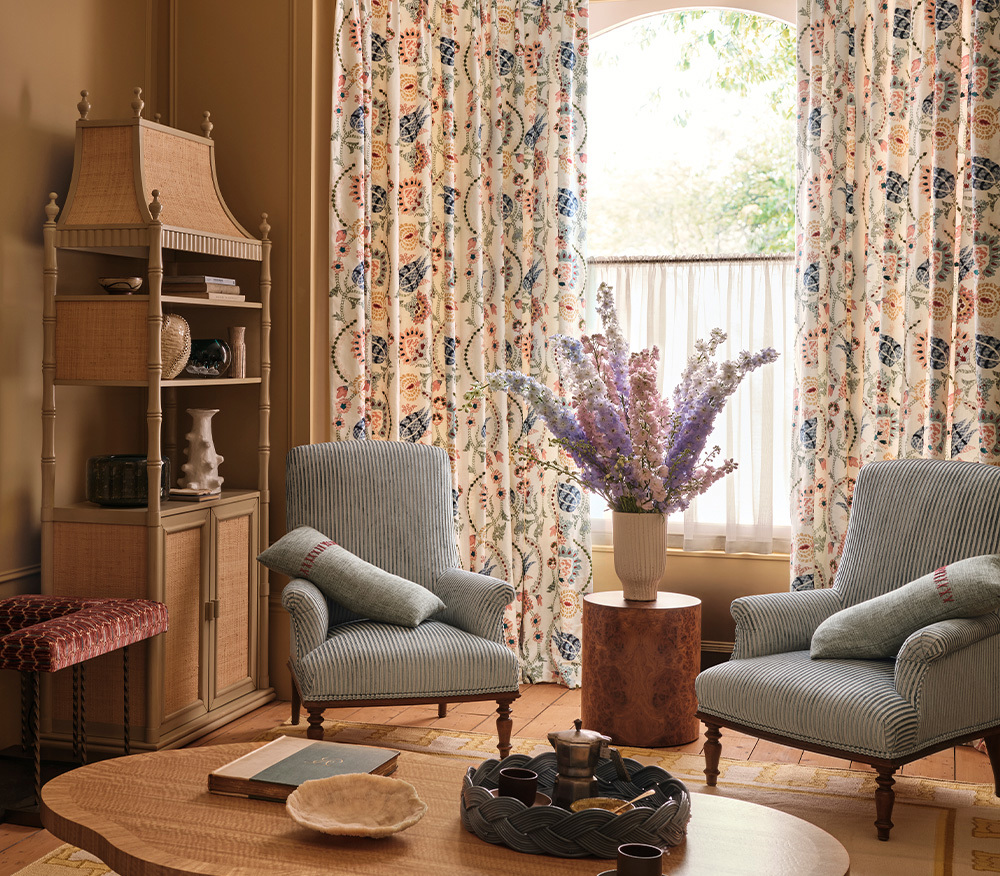 A celebration of expressive design and joyful decoration, the Canya collection captures the spirited charm that defines Jane Churchill. Rich in colour and layered with detail, these luxurious fabrics feature a vibrant interplay of prints and embroidery, each one brimming with artistic character.